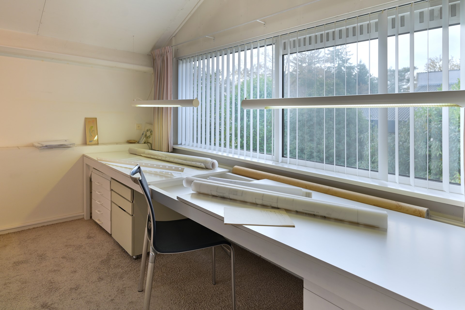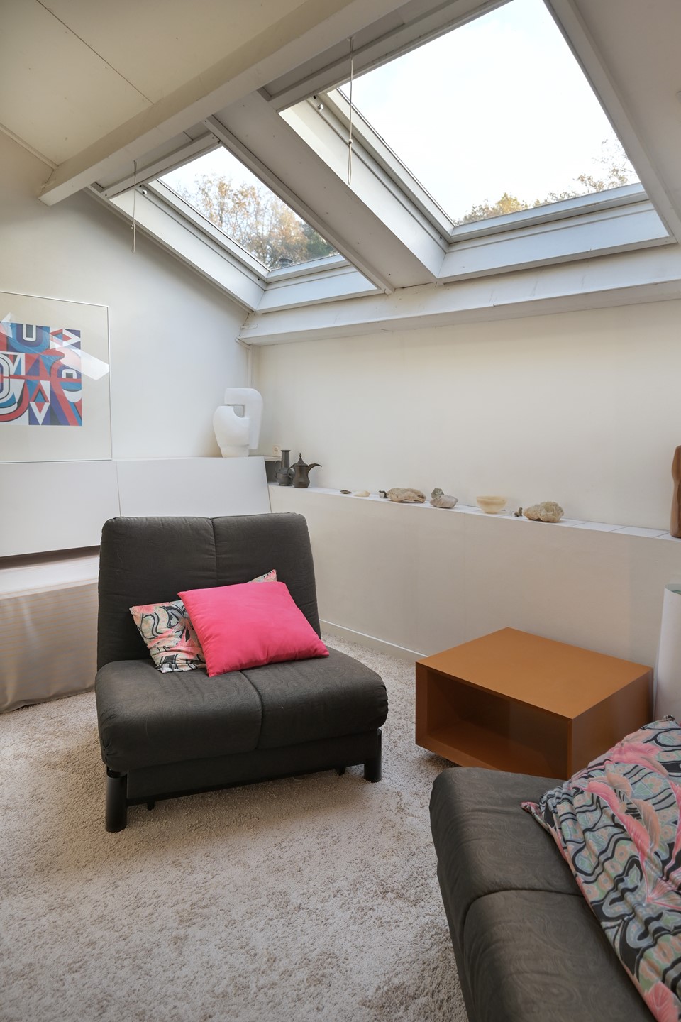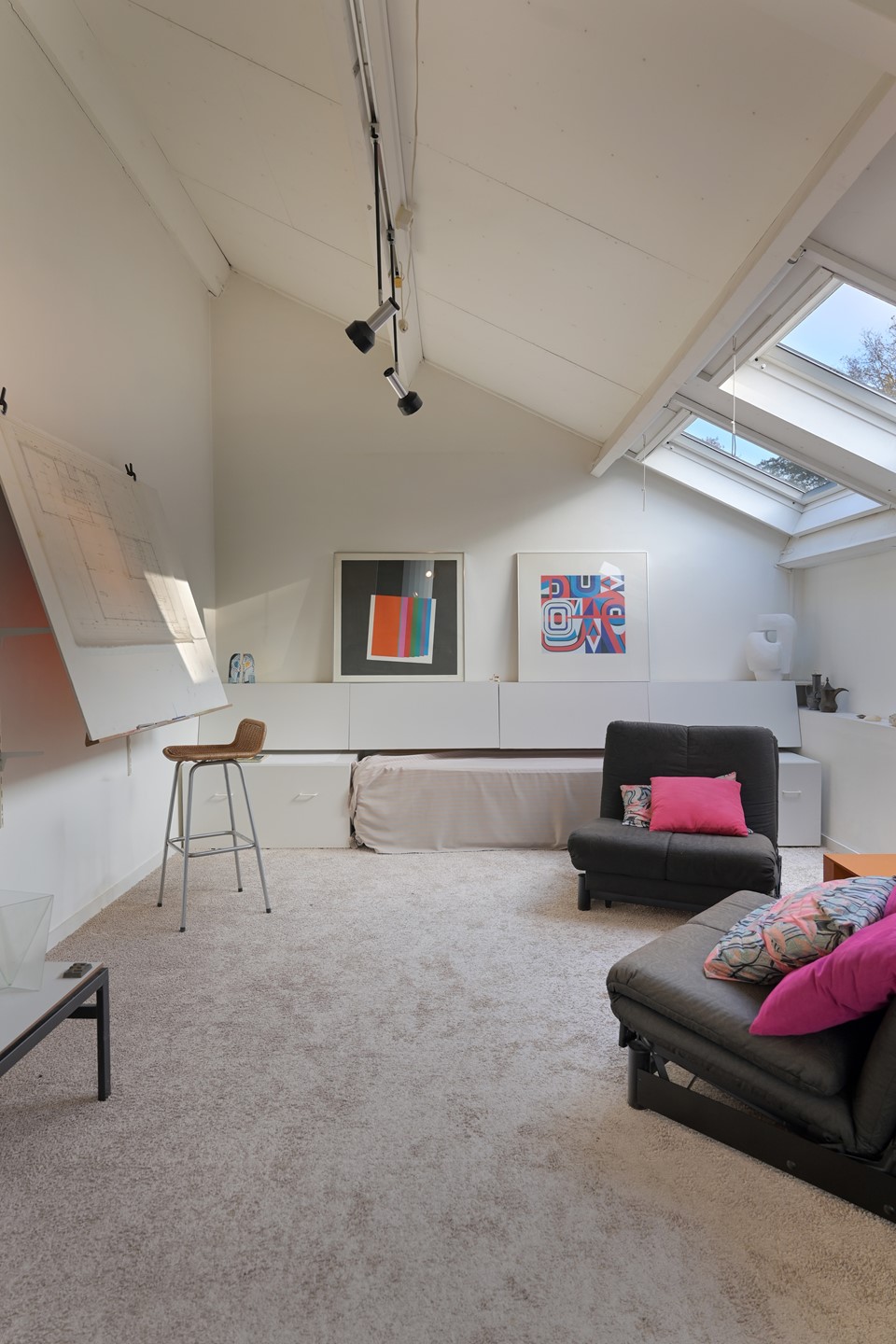 De grootste kamer kan uiteraard als slaapkamer gebruikt worden maar zou tevens een schitterend atelier kunnen zijn door de mooie lichtinval via de dubbele velux ramen.