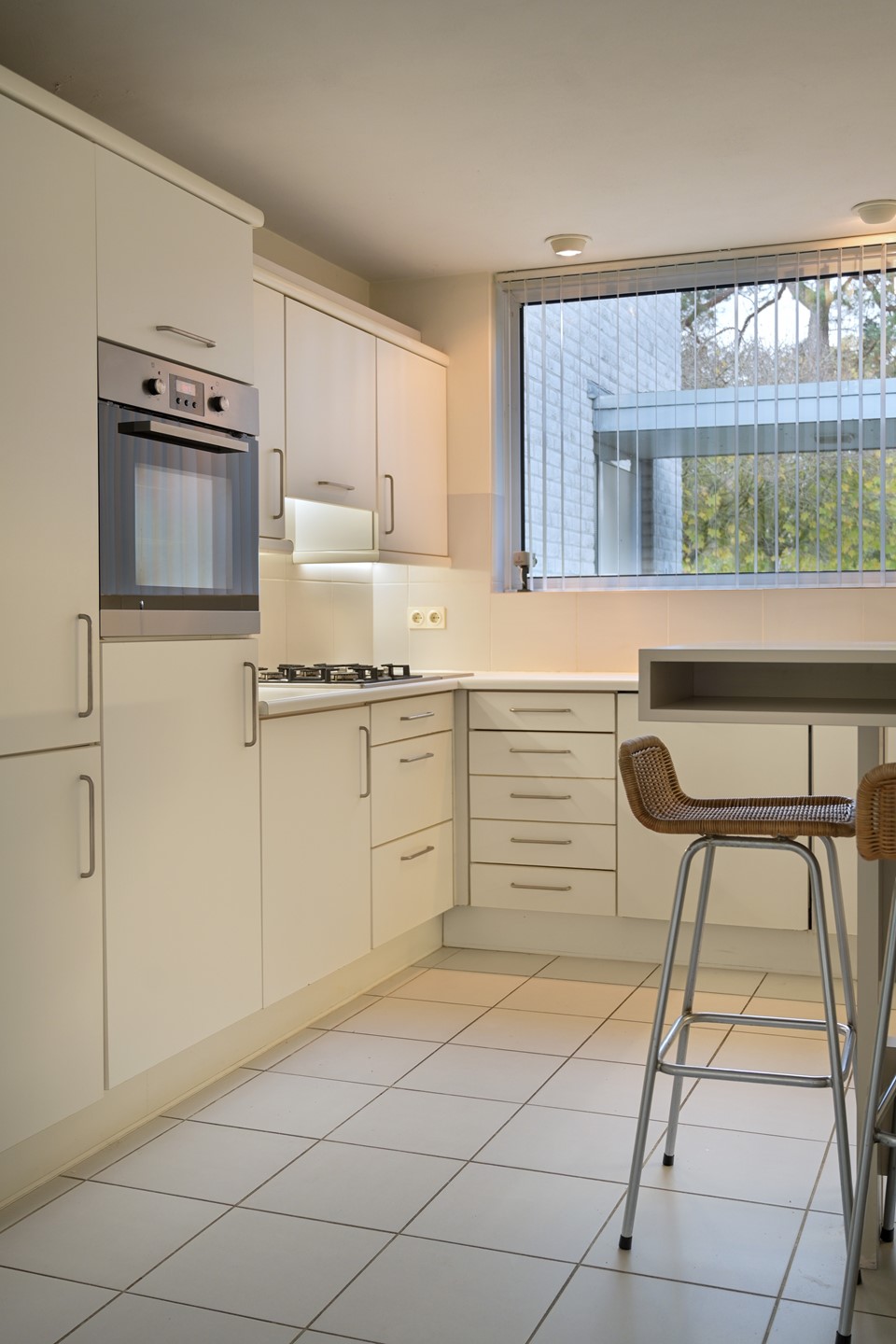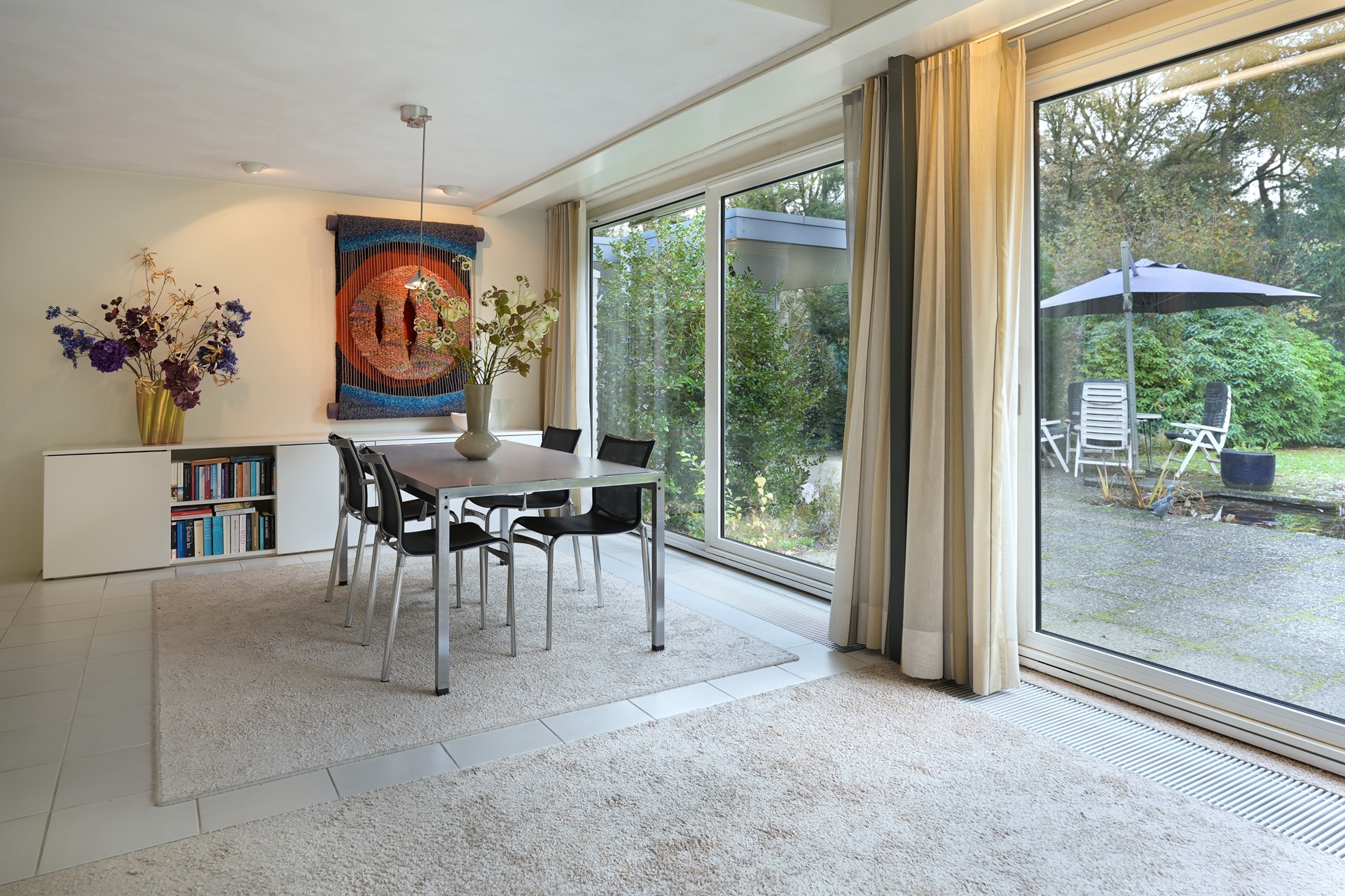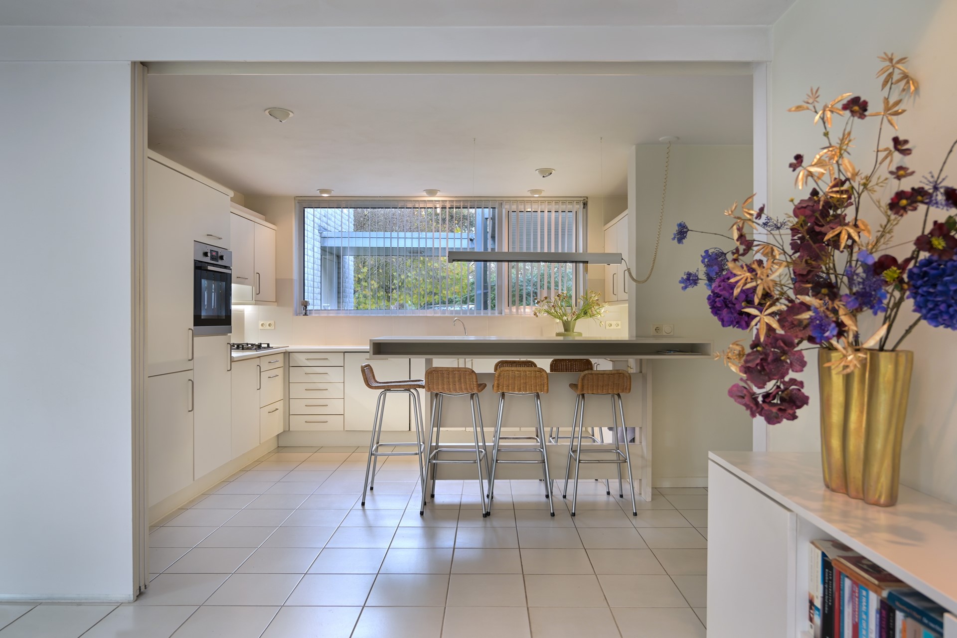 Vanuit de woonkamer is er direct toegang tot keuken, bijkeuken en garage.