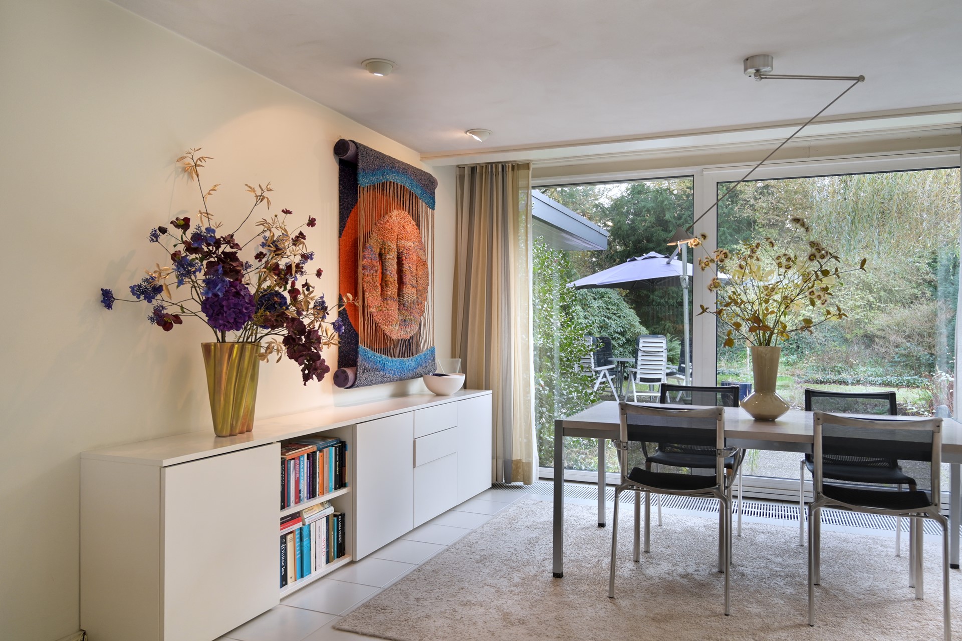Over de gehele breedte van de woonkamer bevinden zich schuifdeuren met glas wat de woonkamer prachtig licht maakt.