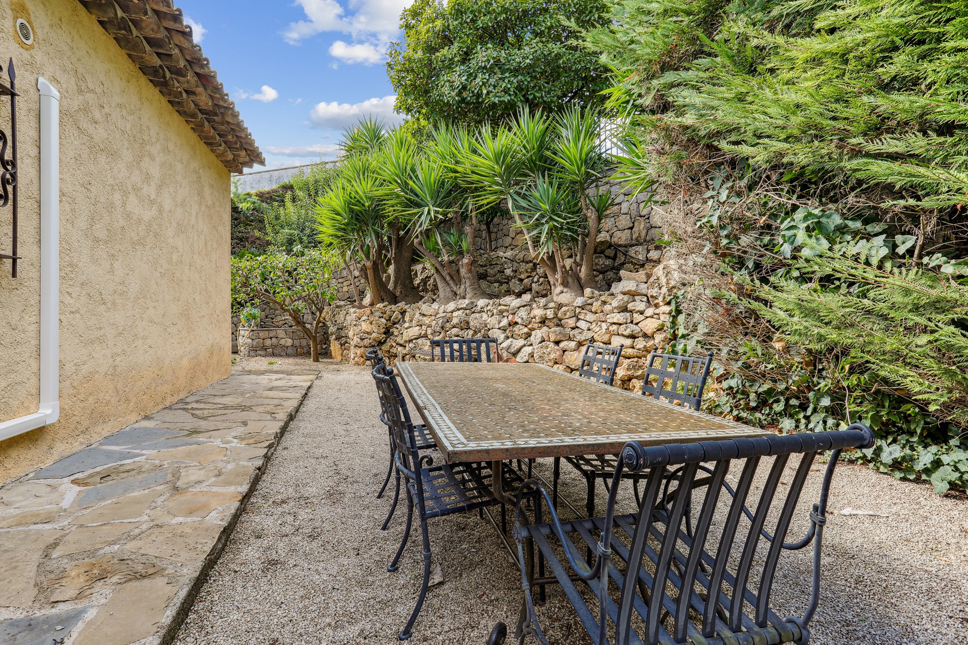 Op dezelfde verdieping bevinden zich twee tweepersoonsslaapkamers met een gedeelde doucheruimte, evenals een berging. De lichte en uitnodigende woonkamer grenst aan een extra eethoek. Achter het huis bevindt zich nog meer buitenruimte en een trap naar het zwembad, met een terras en een jeu de boulesbaan. De tuin is voorzien van een automatisch sproeisysteem en sfeervolle verlichting voor de avonden aan de Côte d'Azur.