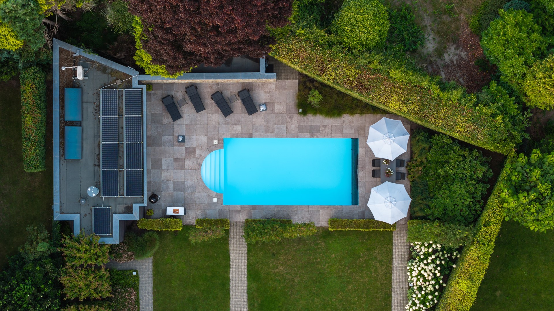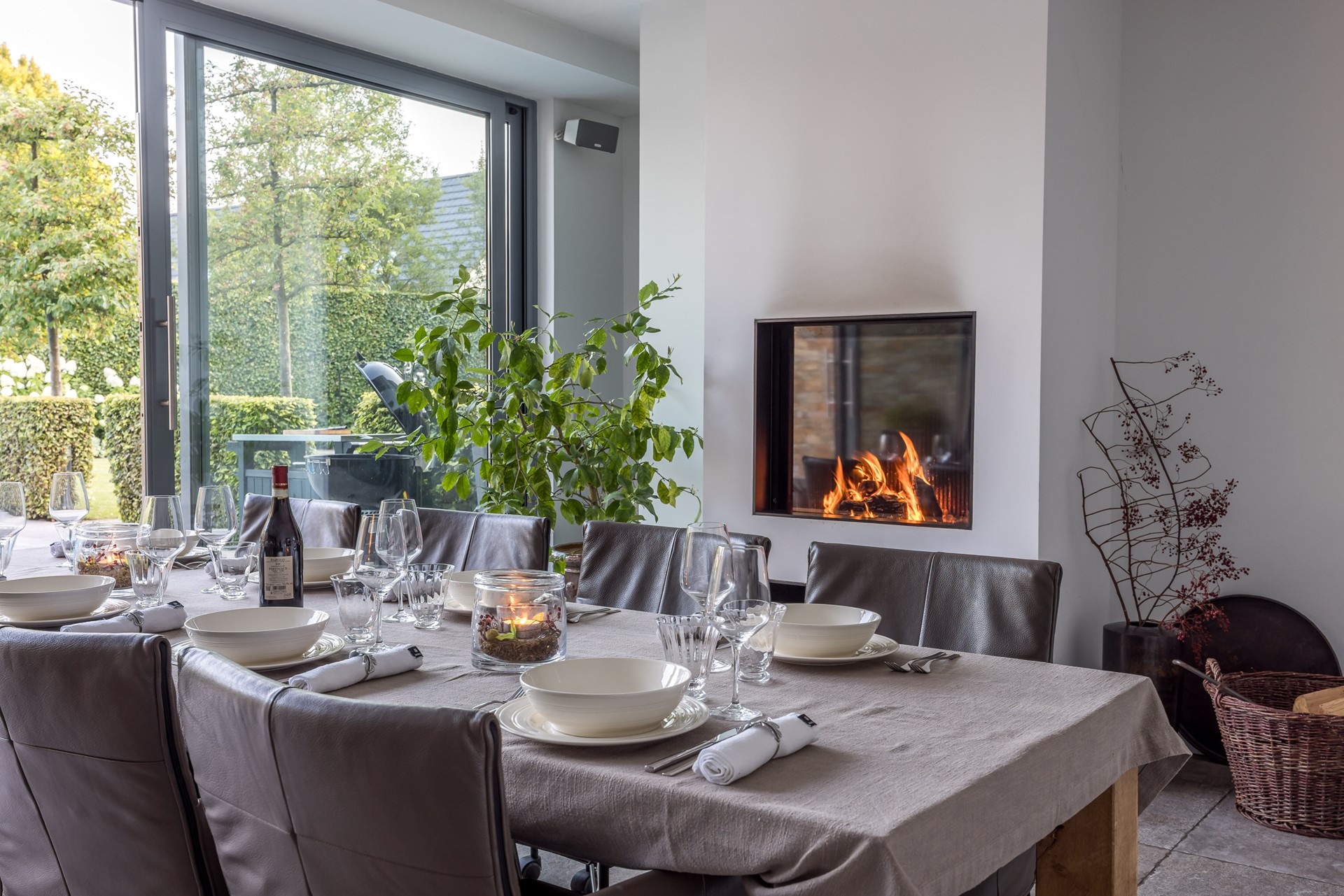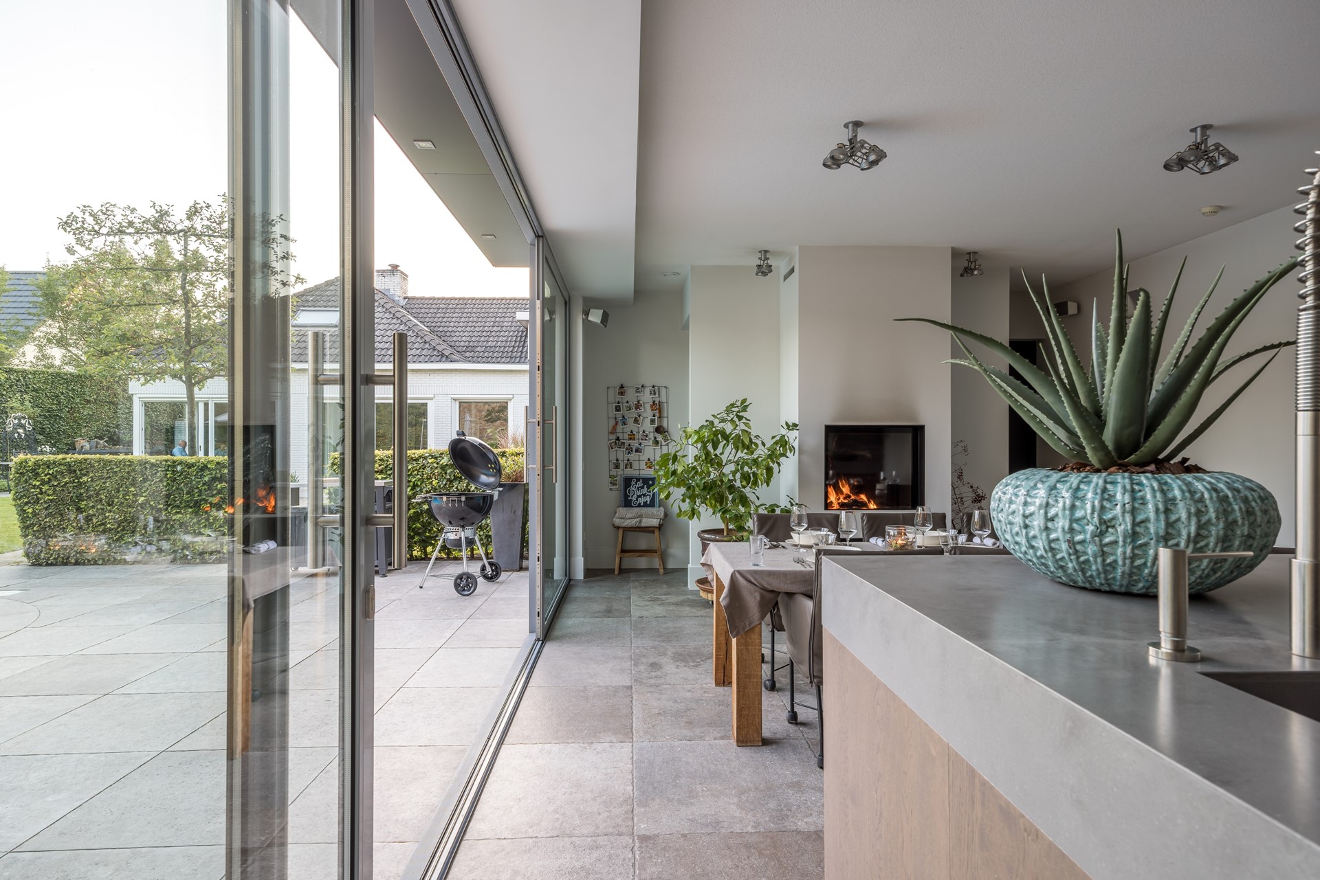 Op zomerse dagen stap je zo vanuit de woonkamer het terras op, richting het poolhouse en je eigen zwembad. Het poolhouse is een veelzijdige ruimte met een volledig uitgeruste keuken, extra bergruimte, douche en toilet. Met deze complete voorzieningen is het een volwaardige tweede leefruimte. Binnen is plaats voor een grote eettafel met comfortabele zitplekken – perfect voor lange diners, een borrel of een ontspannen middag uit de zon.