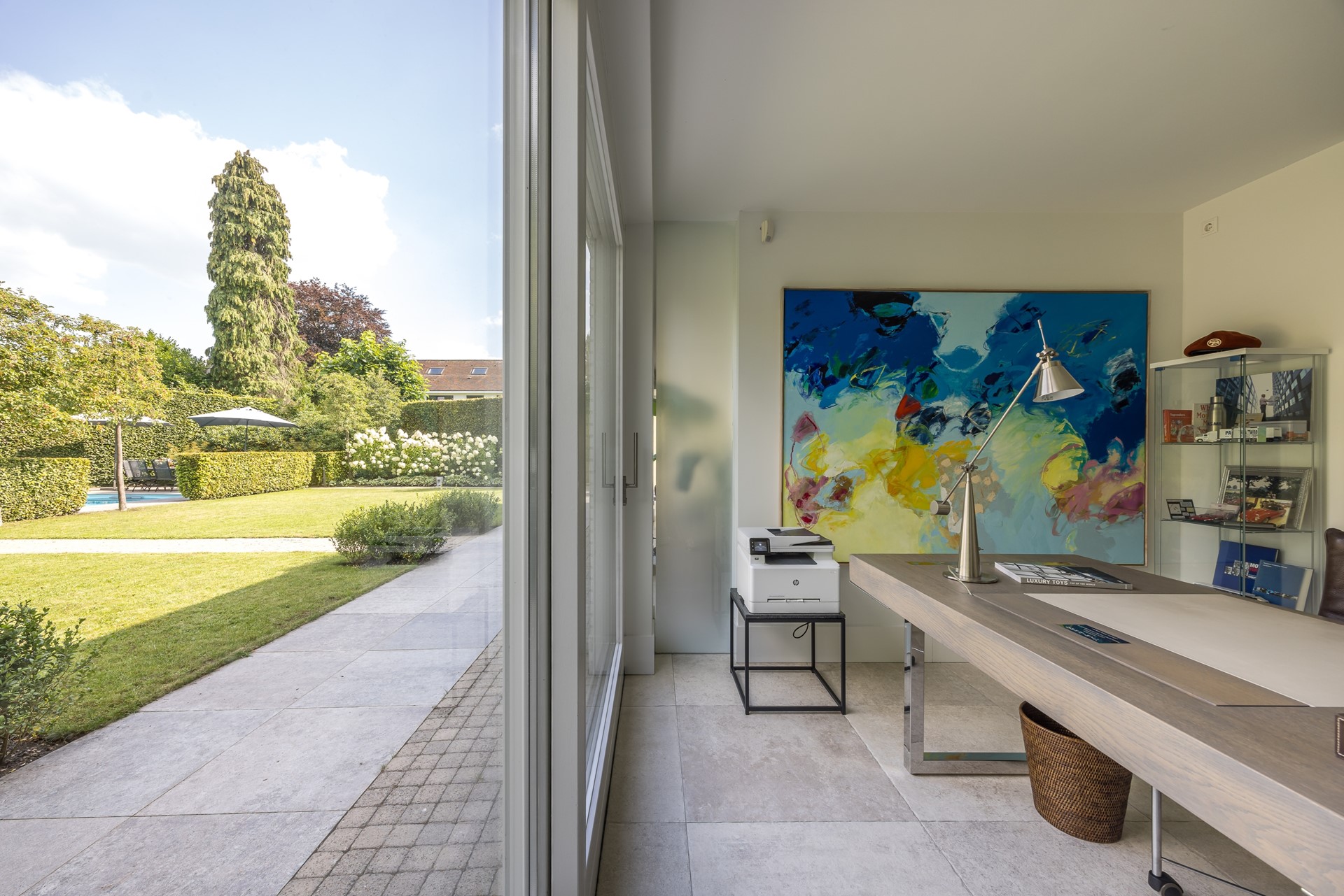 De villa beschikt over een separate kantoorruimte: een rustige werkplek om ongestoord te werken, te videobellen of een eigen praktijk te voeren. Met uitzicht op de tuin voelt thuiswerken hier net even prettiger.